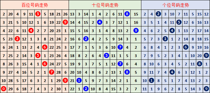 上期开出中奖号029,奇偶比1:2,偶数球热出,近十期奇偶比15:15,从整体来看,奇偶数球走势持平,本期预测奇数球热出,推荐奇偶比值2:1