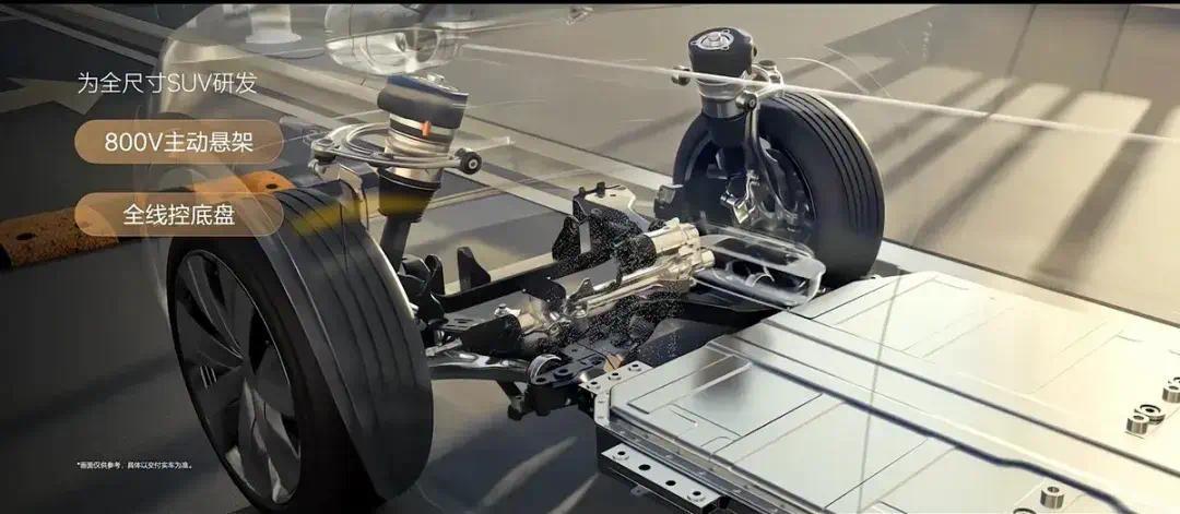 内饰方面,新车将采用全新设计风格,配备800V全主动悬架系统,提供全球首个"完全体"全线控底盘,包含线控转向、四轮转向、线控刹车,并拥有全球最强算力2560 TOPS的“超强大脑”以及4颗激光雷达。